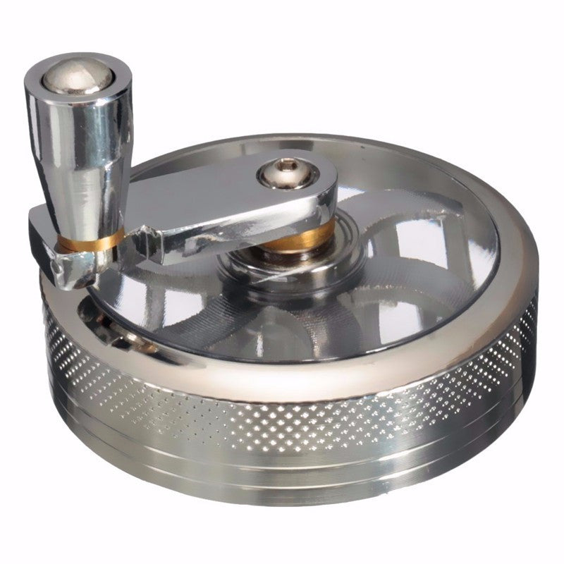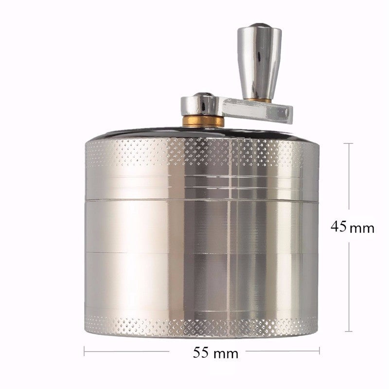 The hand crank grinder is designed for smooth and easy grinding. It has 4 layers including a hand cranking top piece with a magnetic rim on top and a kief catcher on the bottom.